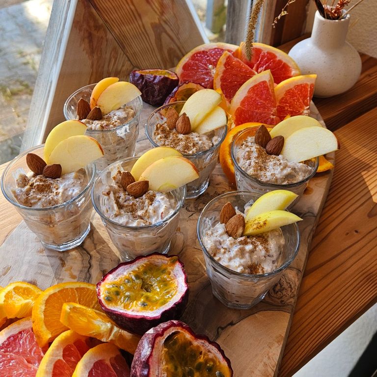 Optionaler Brunch kannst du vor Ort bezahlen. Speisen sind vegan/vegetarisch (von Hummus-Brot bis Porridge ist für jeden etwas dabei). Hier geht's zur Speisekarte.
