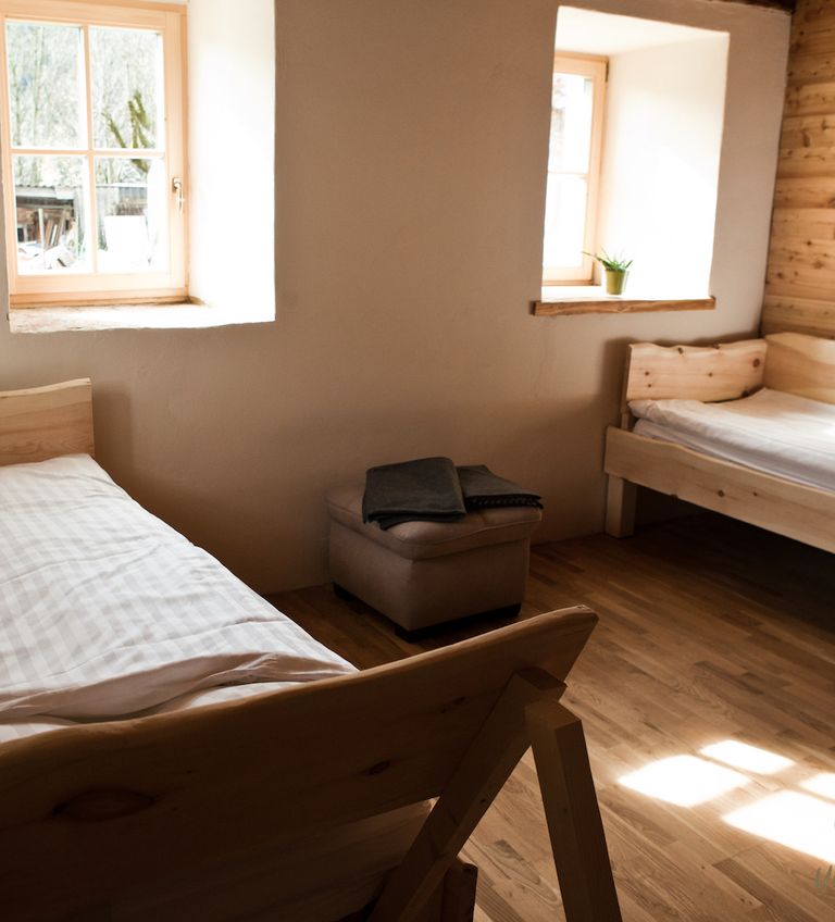 Package im Vierbett-Zimmer pro Person mit Bad (du teilst dir ein Zimmer + Bad mit drei Personen) In den Zimmern sind 4 separate Betten vorhanden. ZIMMEREINBLICK